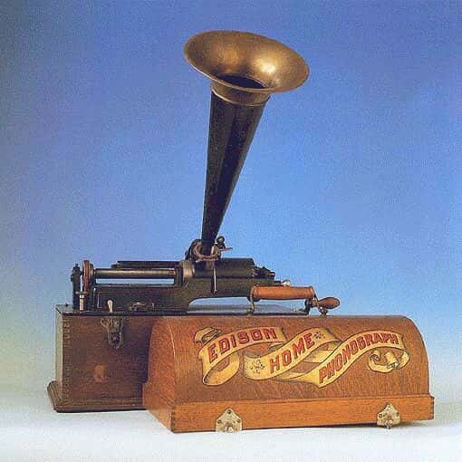 Thomas Alva Edison (1847-1931) esboçou em 1877 uma máquina com um cilindro recoberto de estanho, movido a manivela e com um bocal, no qual se falava fazendo vibrar uma agulha. A agulha arranhava o estanho e depois, passada pelos mesmos sulcos, reproduzia o som. O próprio Edison inaugurou o seu fonógrafo ou "máquina de falar" recitando os versos da canção infantil Mary had a little lamb.